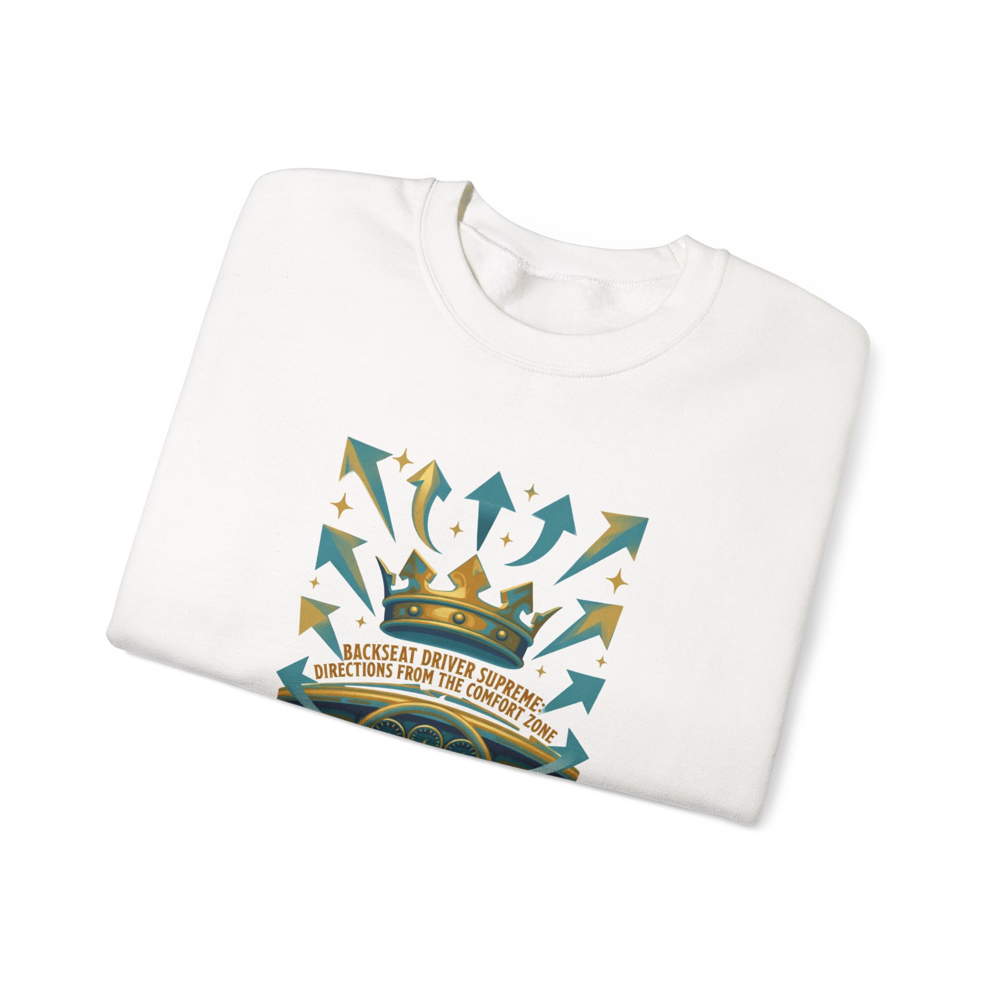 Rule the road without ever touching the wheel with supreme backseat authority. A grand brass dashboard crown sits regally atop layered steering wheel, GPS screen, and coffee cup holders in teal and mustard tones, surrounded by swirling advice arrows and faint gold “turn here” sparks flying in all directions. Mustard-gold script reads: “BACKSEAT DRIVER SUPREME: DIRECTIONS FROM THE COMFORT ZONE.” It’s classic sarcastic dad humor in vibrant jewel tones—relatable passenger commentary legend that’s perfect for Father’s Day or any dad who provides expert guidance from the safest seat in the car.