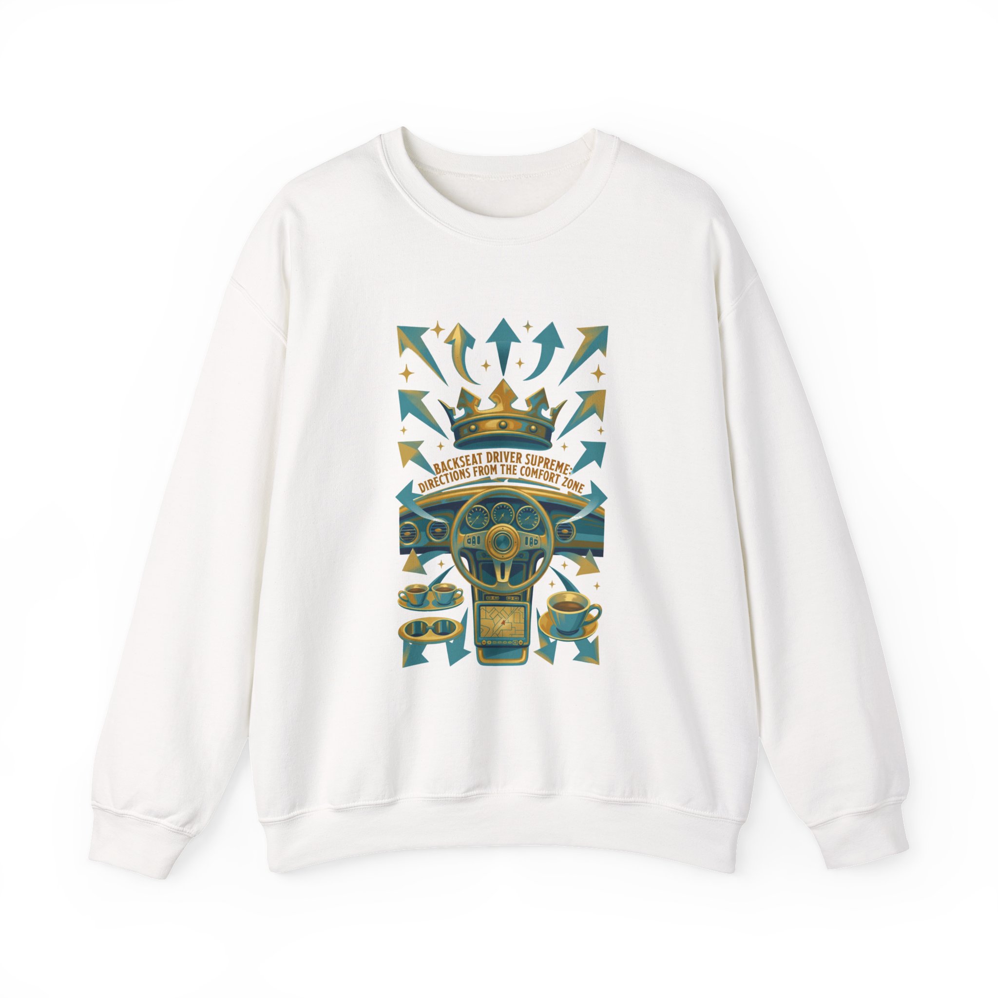 This cozy crewneck sweatshirt carries a vintage-inspired driving motif—dash, steering wheel and travel icons rendered in warm teal and gold tones—so it feels like a quiet road trip memory you can wear. The medium-heavy cotton‑poly blend hangs with a classic, clean silhouette and the ribbed collar and cuffs keep shape through repeated wear. Embroidery options let you add subtle stitched accents at the chest or wrists to elevate the look, while tear-away neck labels and OEKO‑TEX dyes make it comfortable and responsibly finished. Slip it on for slow morning coffee, long drives, or breezy evenings when you want something soft that still reads crafted and intentional.