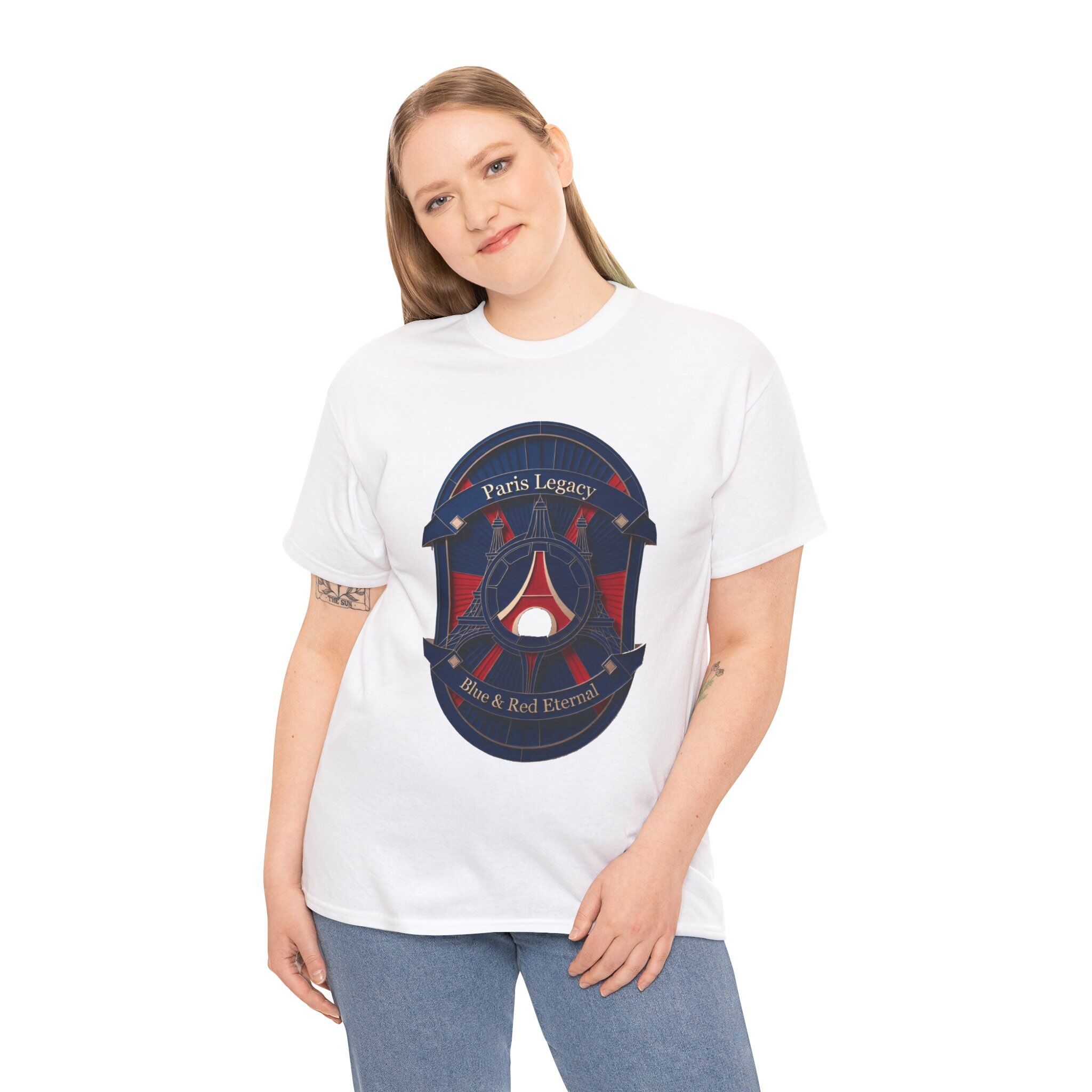 From the iconic towers of Paris to proud hearts in New York, London, Toronto, Sydney and Riyadh—where navy blue legacy meets red passion on the pitch. This sophisticated emblem brings city pride to life in a refined oval crest: a stylized soccer ball anchors the center within a striking abstract Eiffel Tower-inspired design, framed by geometric quarters and radiating lines in dominant navy blue with bold red accents. Subtle pale brass/gold highlights add luxurious depth. The curved top banner reads “Paris Legacy” and the bottom ribbon echoes “Blue & Red Eternal”.